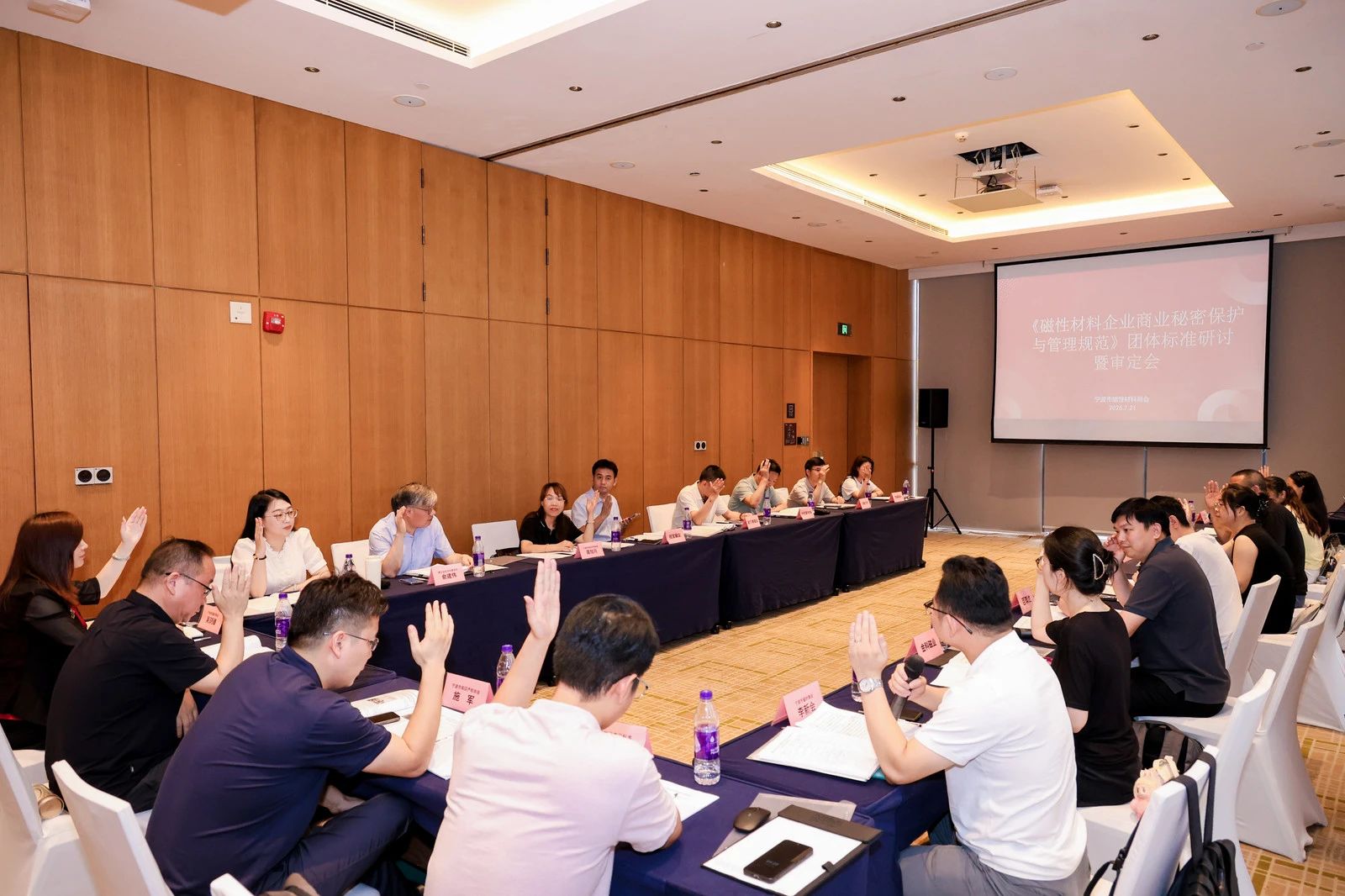 2025年7月19日下午,《磁性材料企業商業秘密保護與管理規范》團體標準研討暨審定會在寧波羅蒙希爾頓花園酒店順利召開。作為該團體標準的歸口單位,寧波市知識產權協會全程參與并助力此次會議,與政府部門、行業協會、企業代表及法律專家共20余人齊聚一堂,共同為磁性材料行業商業秘密保護規范化發展凝聚共識。