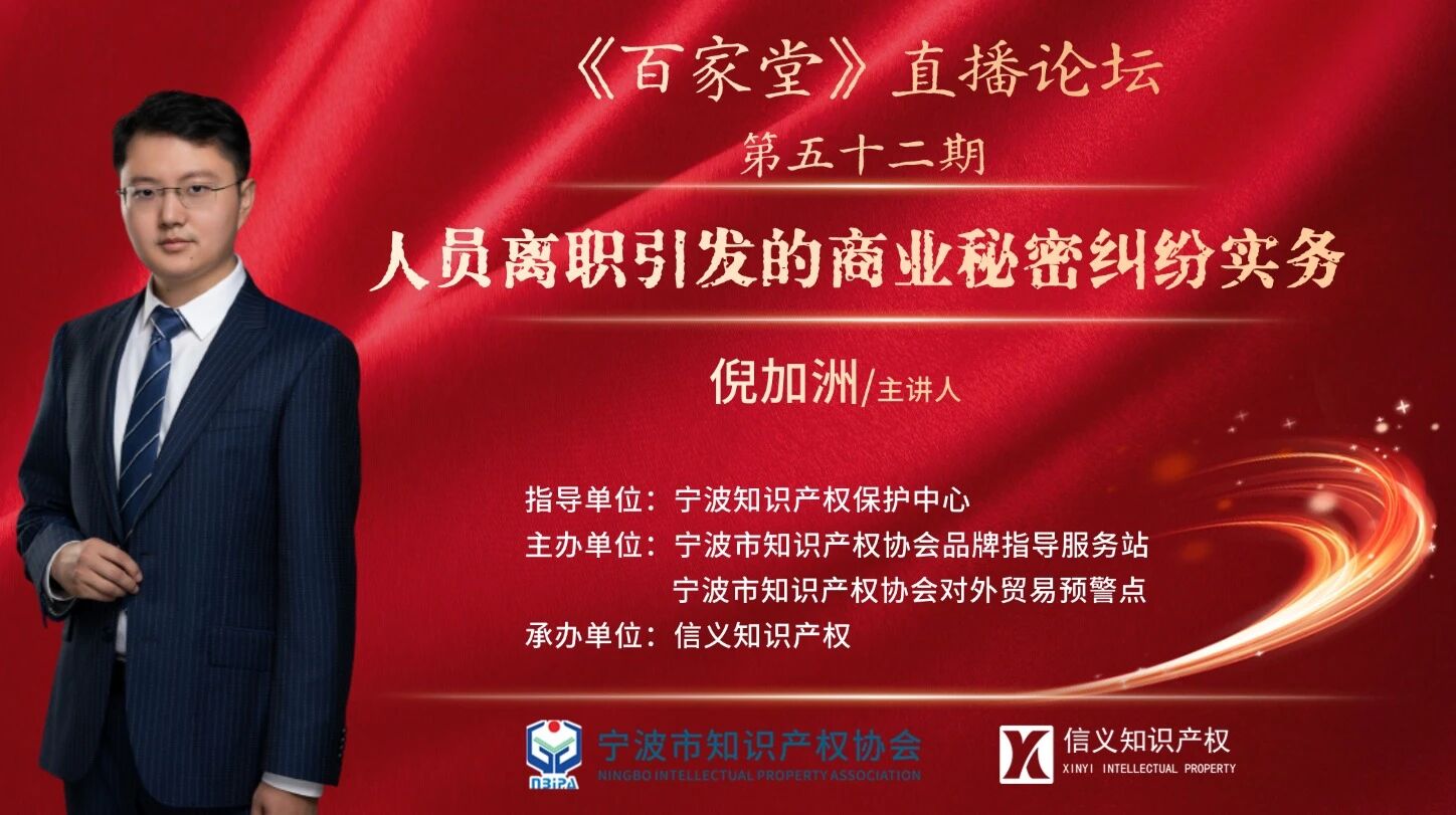 直播預(yù)告|下周四晚七點(diǎn)第五十二期百家堂直播《人員離職引發(fā)的商業(yè)秘密糾紛實(shí)務(wù)》