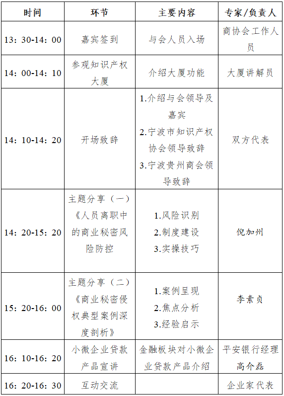 為幫助企業(yè)管理者、人力資源及法務(wù)負(fù)責(zé)人精準(zhǔn)識(shí)別人才流動(dòng)中的商業(yè)秘密風(fēng)險(xiǎn),構(gòu)建行之有效的內(nèi)部防控體系,寧波知識(shí)產(chǎn)權(quán)保護(hù)中心、寧波貴州商會(huì)和寧波市知識(shí)產(chǎn)權(quán)協(xié)會(huì)共同舉辦本次“企業(yè)商業(yè)秘保護(hù)實(shí)物講座”。