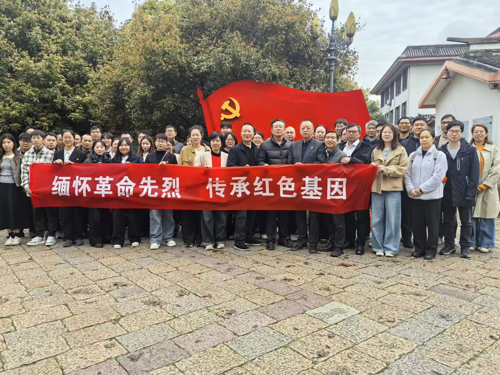 參觀結束后,全體黨員在朱楓烈士紀念樓前整齊列隊、合影留念,定格緬懷先烈、傳承初心的莊嚴時刻。