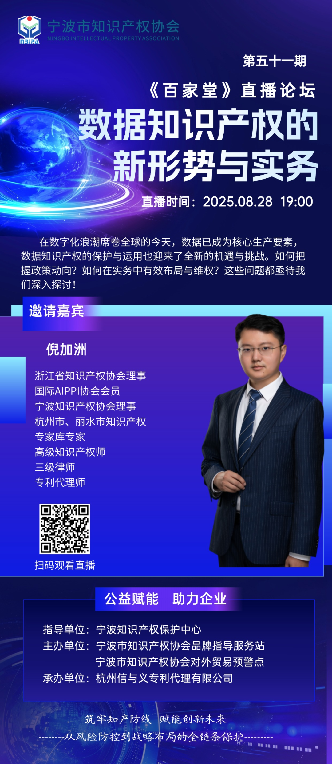主頁 >> 專題活動 > 知識產權講師團 > >> 直播預告 | 今晚七點 第五十一期百家堂直播《數據知識產權的新形勢與實務》